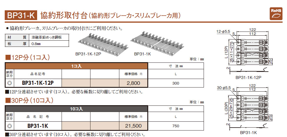 BP31-1K-12P 協約形取付台 12P分(1コ入)