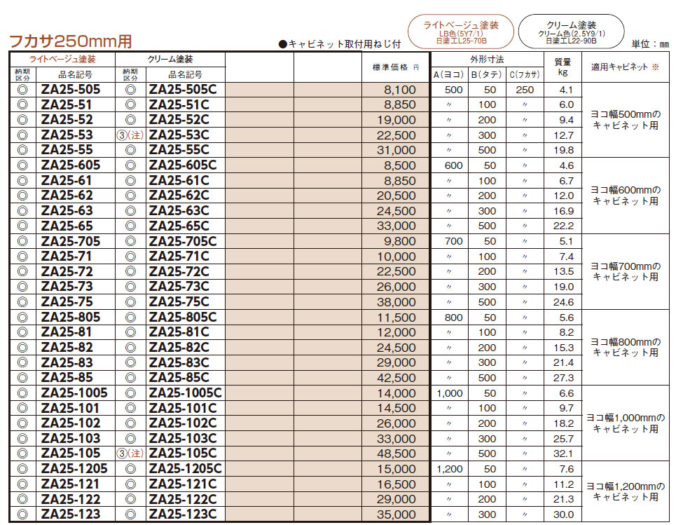 ZA25-105 基台 フカサ250mm用