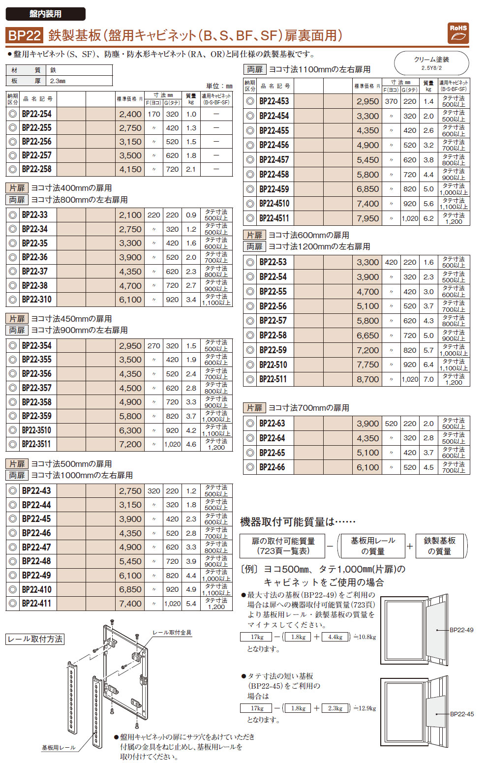 BP22-511 鉄製基板(盤用キャビネット扉裏面用)