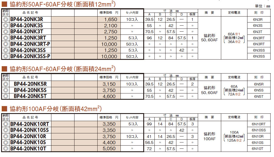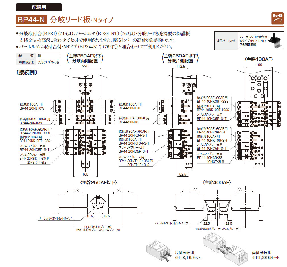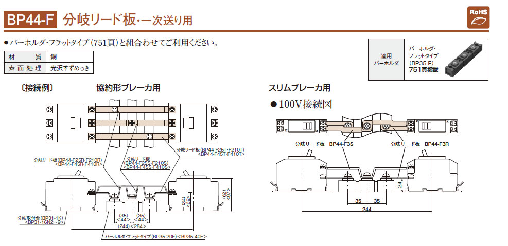 BP44-F45R 分岐リード板 一次送り用 協約形ブレーカ用 銅バー間ピッチ 44mm