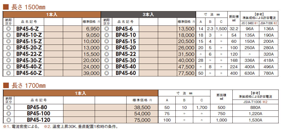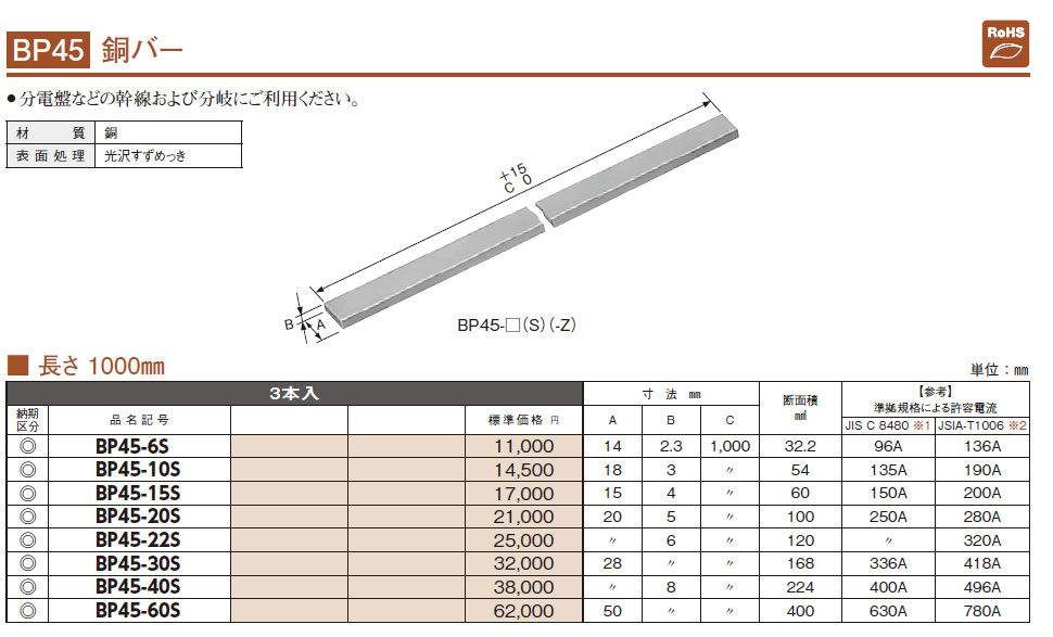 BP45-60-Z 銅バー 長さ1500mm 1本入