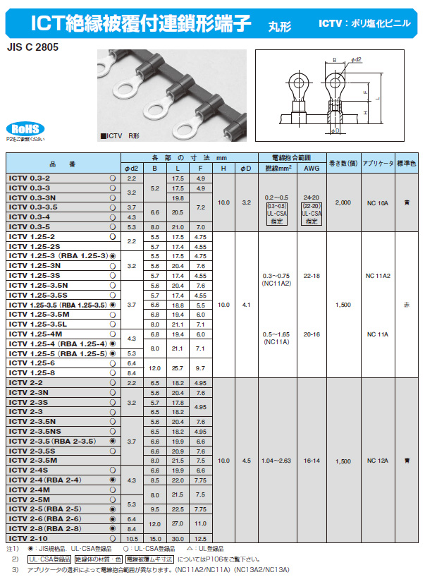 ICT絶縁被覆付連鎖形端子 ICTV 0.3