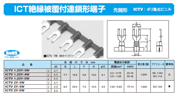 ICT絶縁被覆付連鎖形端子 ICTV 1.25Y-3W
