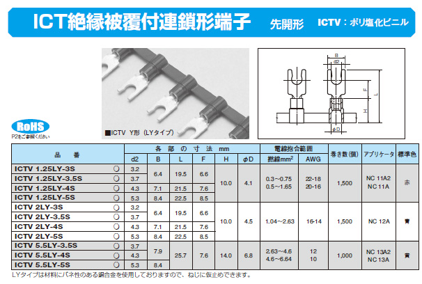 ICT絶縁被覆付連鎖形端子 ICTV 1.25LY