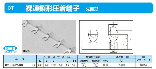 裸連鎖形圧着端子 CT 1.25Y-3S
