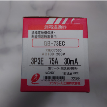 【在庫限り品】漏電遮断器 メーカー:テンパール 型式:GB-73EC