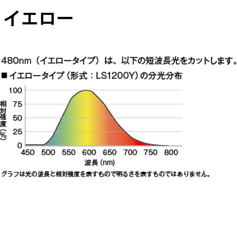 - 480nm以下の短波長光をカット し、虫の誘引や感光材料への影響を抑えます