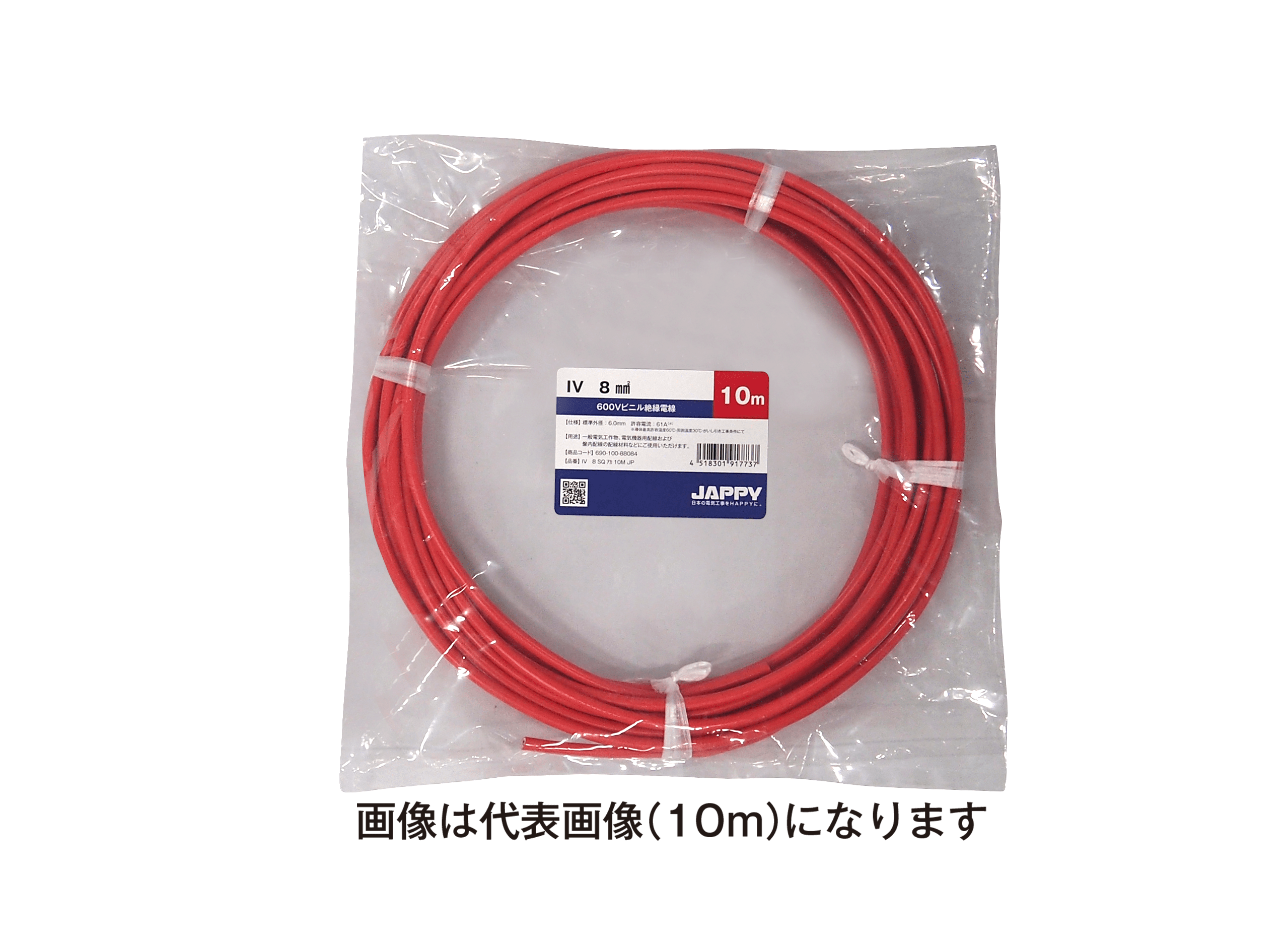 JAPPY ビニル絶縁電線 IV 8sq 赤 5m JP