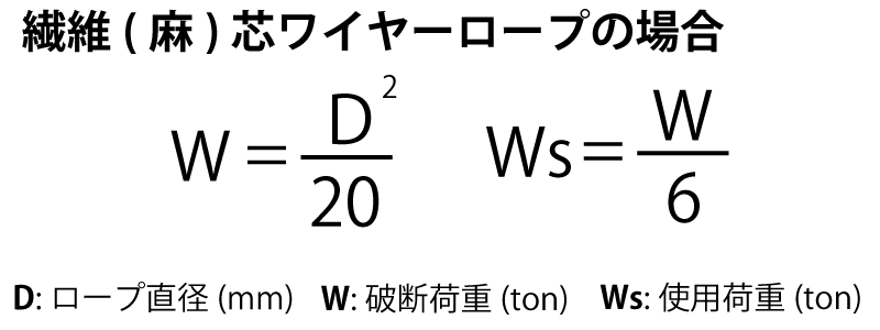 手元にあるワイヤーロープの使用荷重算出に使用。下記の項目を指定すると破断荷重の計算が出来ます。