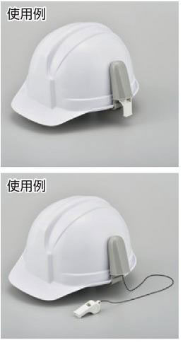 メーカー:日本緑十字社 ヘルメットに装着します。ホイッスルをヘルメット上に収納するので、なくしたりひもによる事故を防ぎます。