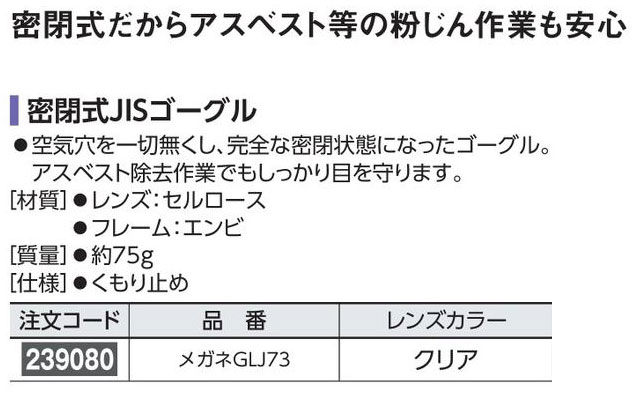 メーカー:日本緑十字社 レンズカラー クリア 材質 レンズ:セルロース フレーム:エンビ 質量:約75g 仕様 くもり止め