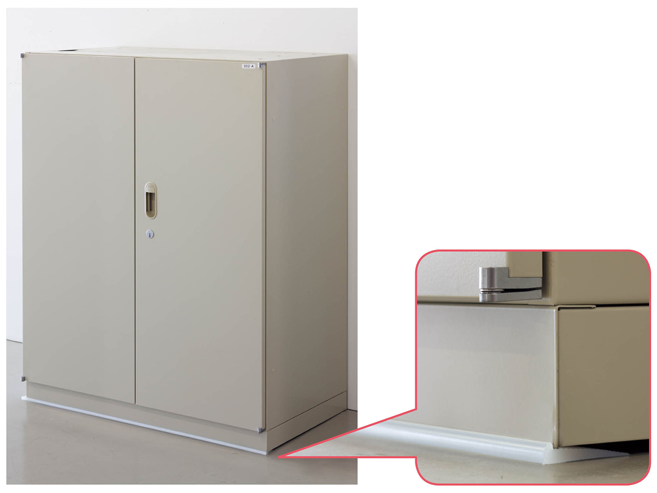 家具の下に敷くだけ。取り付けに釘やねじは不要です。半透明のエラストマー樹脂で目立ちにくく、微弱な震動を吸収します。