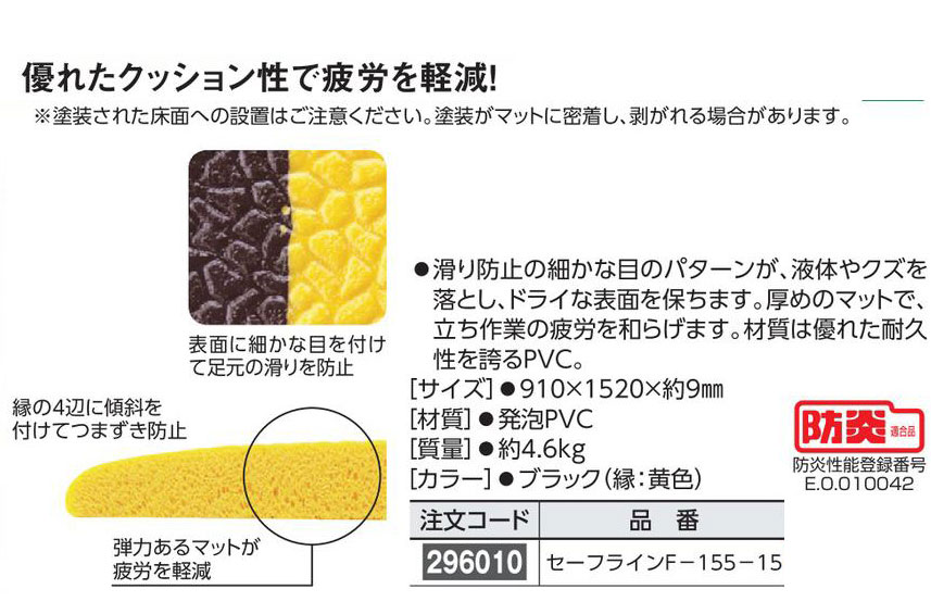 メーカー:日本緑十字社 サイズ 910×1520×約9mm 材質 発泡PVC 質量 約4.6kg カラー ブラック(緑:黄色)