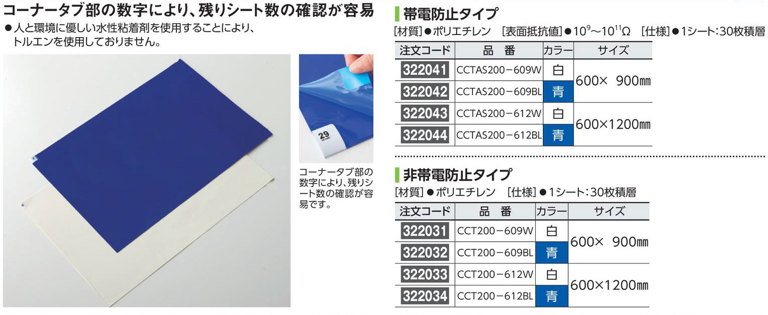- 粘着クリーンマット 非帯電防止タイプ 322032 CCT200-609BL