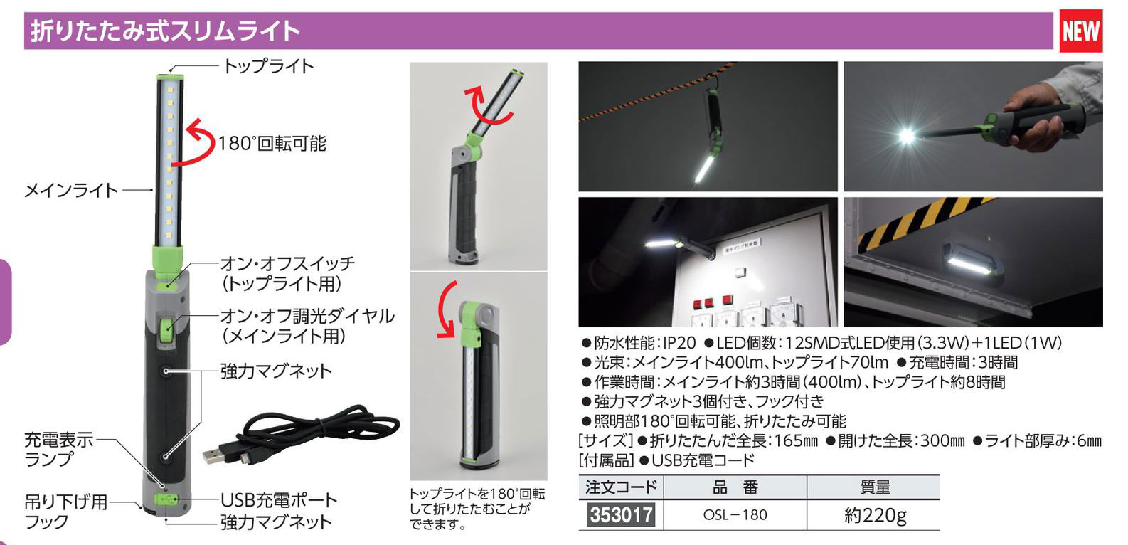 - 折りたたみ式スリムライト 353017 OSL-180