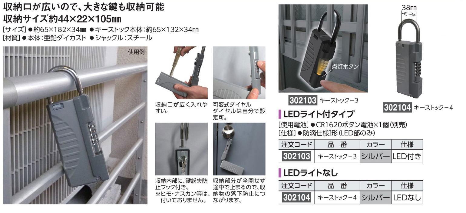 - キーストックハンディ LEDライト付き 302103 キーストック-3