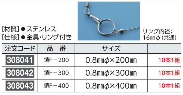 - ステンレスワイヤー 308041 鎖F-200