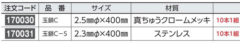 メーカー:日本緑十字社 サイズ 2.5mmΦ×400mm 材質 真ちゅうクロームメッキ 10本1組