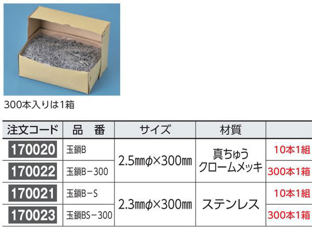 メーカー:日本緑十字社 サイズ 2.5mmΦ×300mm 材質 真ちゅうクロームメッキ 10本1組