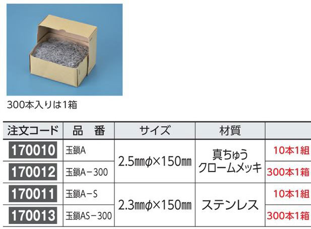 メーカー:日本緑十字社 サイズ 2.5mmΦ×150mm 材質 真ちゅうクロームメッキ 10本1組