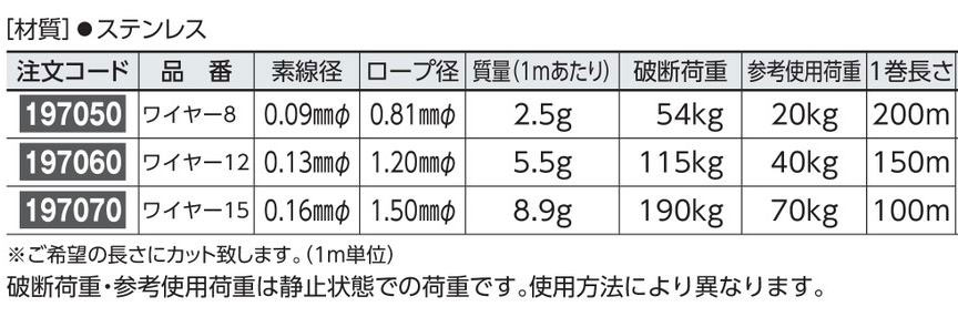 - ステンレスワイヤーロープ 197070 ワイヤー15