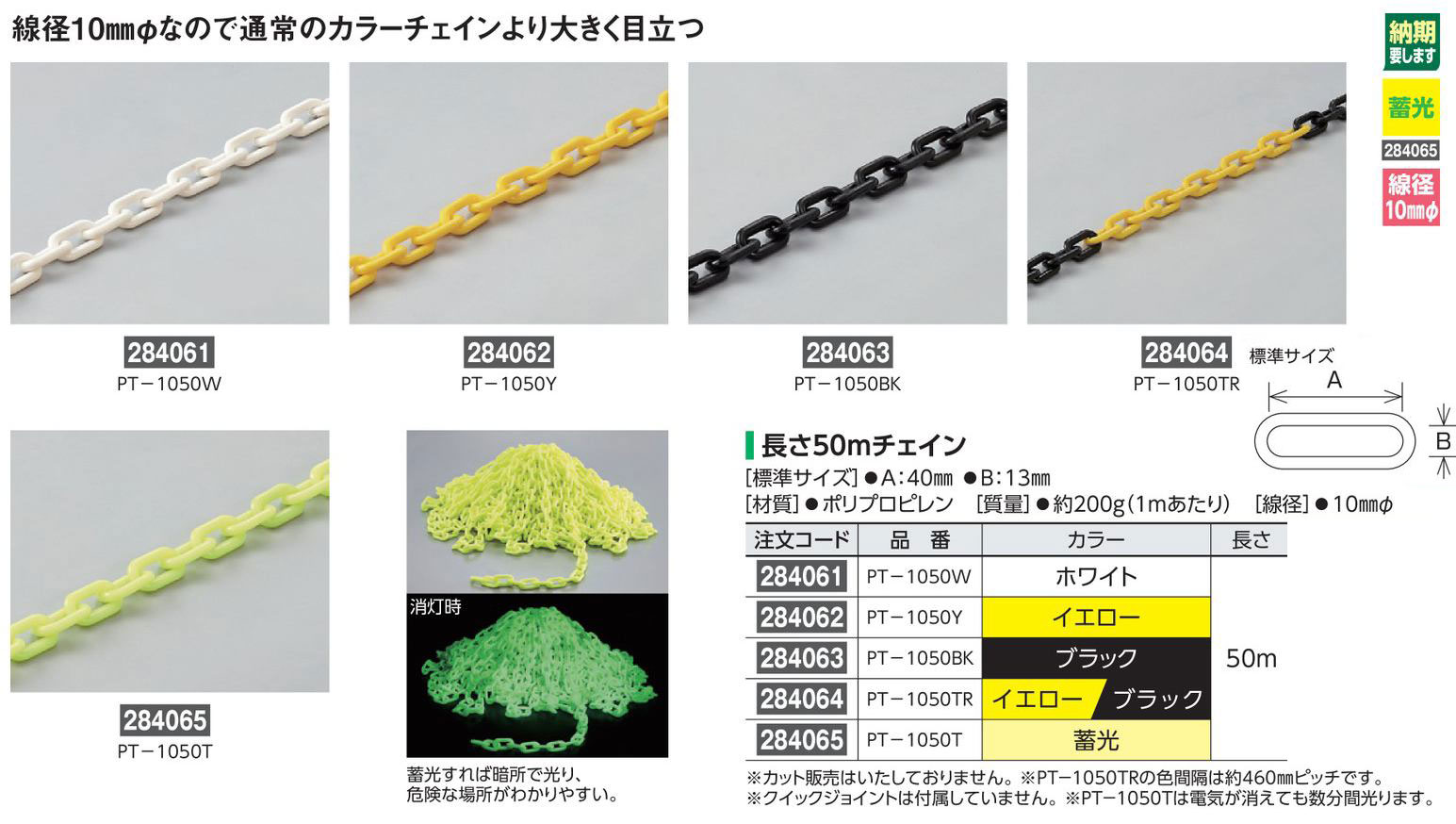 プラカラーチェイン 長さ50mチェイン 284064 PT-1050TR