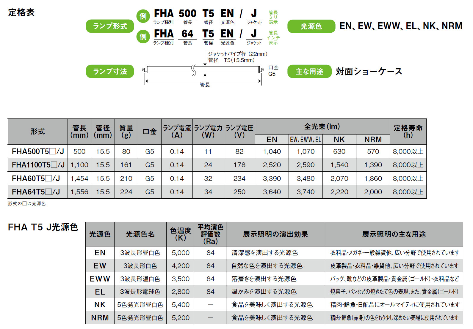 クールライン対面ショーケース用 FHA1100T5_/J T5ランプ