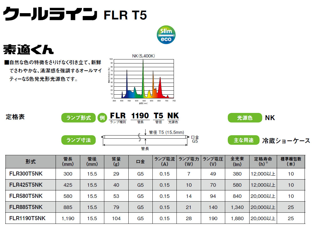 メーカー:プリンス電機 自然な色の特徴をさりげなく引き立て、新鮮でさわやかな、清潔感を強調するオールマイティな5色発光形光源色です
