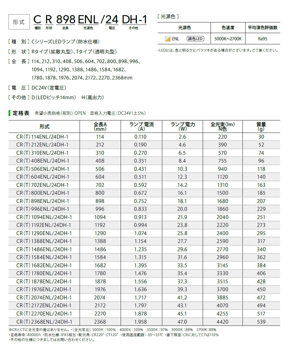 メーカー:プリンス電機 LEDランプ(防水使用)温度範囲0℃~35℃ 色温度を自由にコントロール
