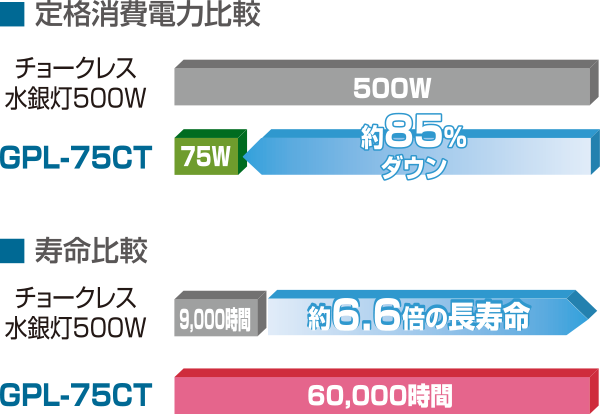 - LED懸垂灯 チョークレス水銀灯500W相当 100V/200V/240V GPL-75CT