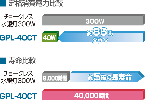 - LED懸垂灯 チョークレス水銀灯300W相当 100V/200V/240V GPL-40CT