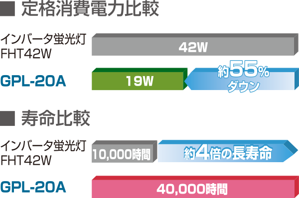 - LED懸垂灯 インバータ蛍光灯FHT42W相当 100V/200V GPL-20A