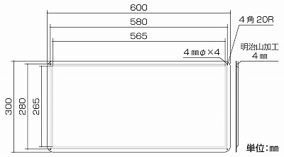 サイズ 600×300×0.4mm 材質 スチール 仕様 4mmφ穴×4 明治山型