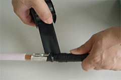 ●テープは長さを50%程度伸ばしながら巻き付けます。テープの巻き終わりはハサミ、ナイフなどで切断します。 巻き終わりは伸ばさないで、よく押さえ付けてください。