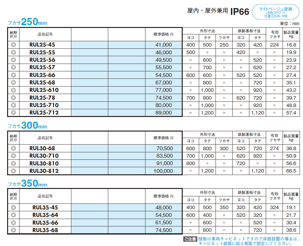 RUL25-56 RUL形キャビネット 鉄製基盤付