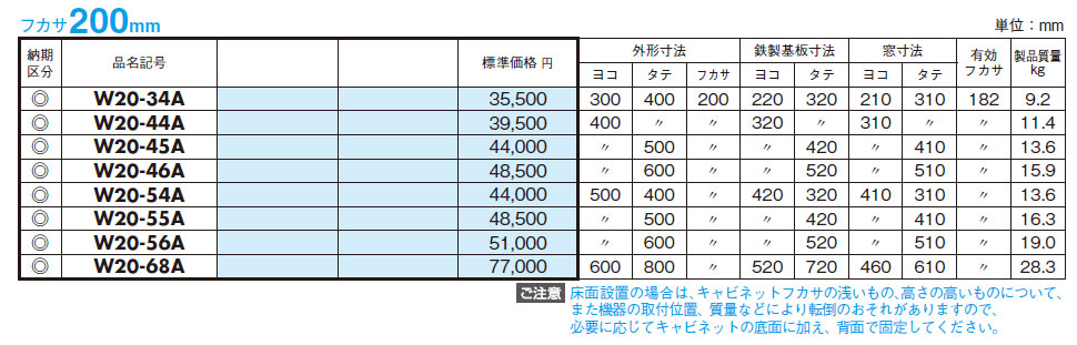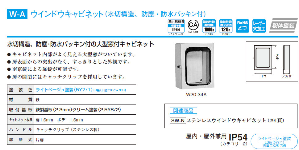 W20-44A ウインドウキャビネット(水切構造、防塵、防水パッキン付)鉄製基盤付