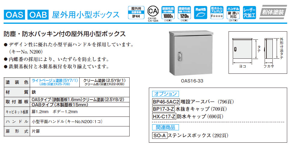 OAS16-44 屋外用小型ボックス(防塵、防水パッキン付)鉄製基盤付