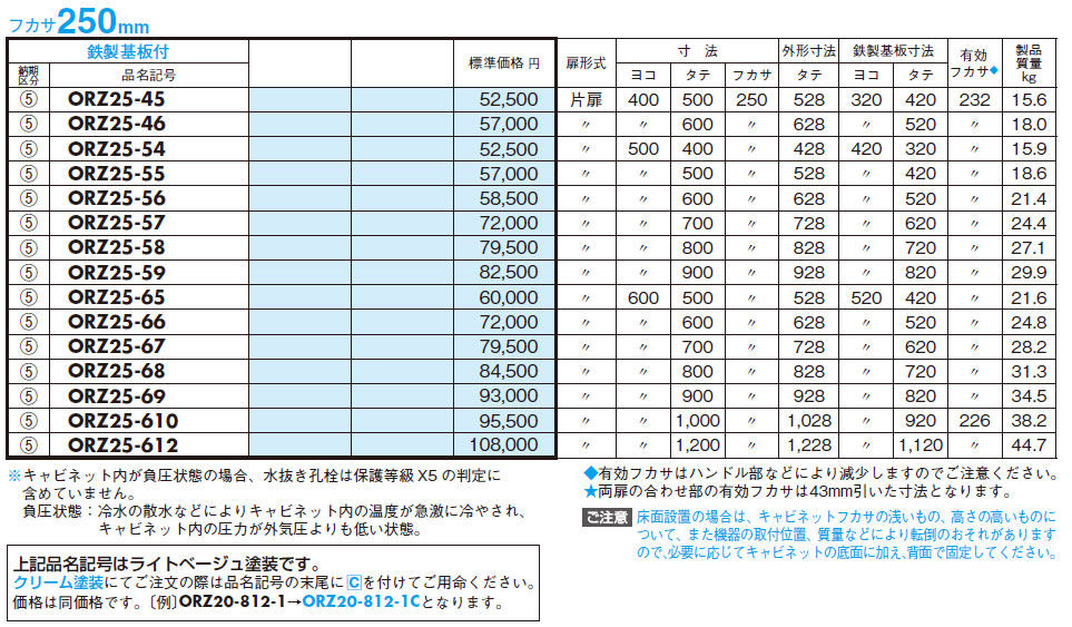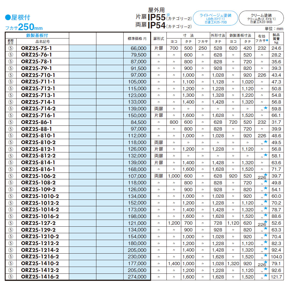 ORZ25-68 ORZ形屋外用キャビネット(水切構造、防塵・防水パッキン付)鉄製基板付