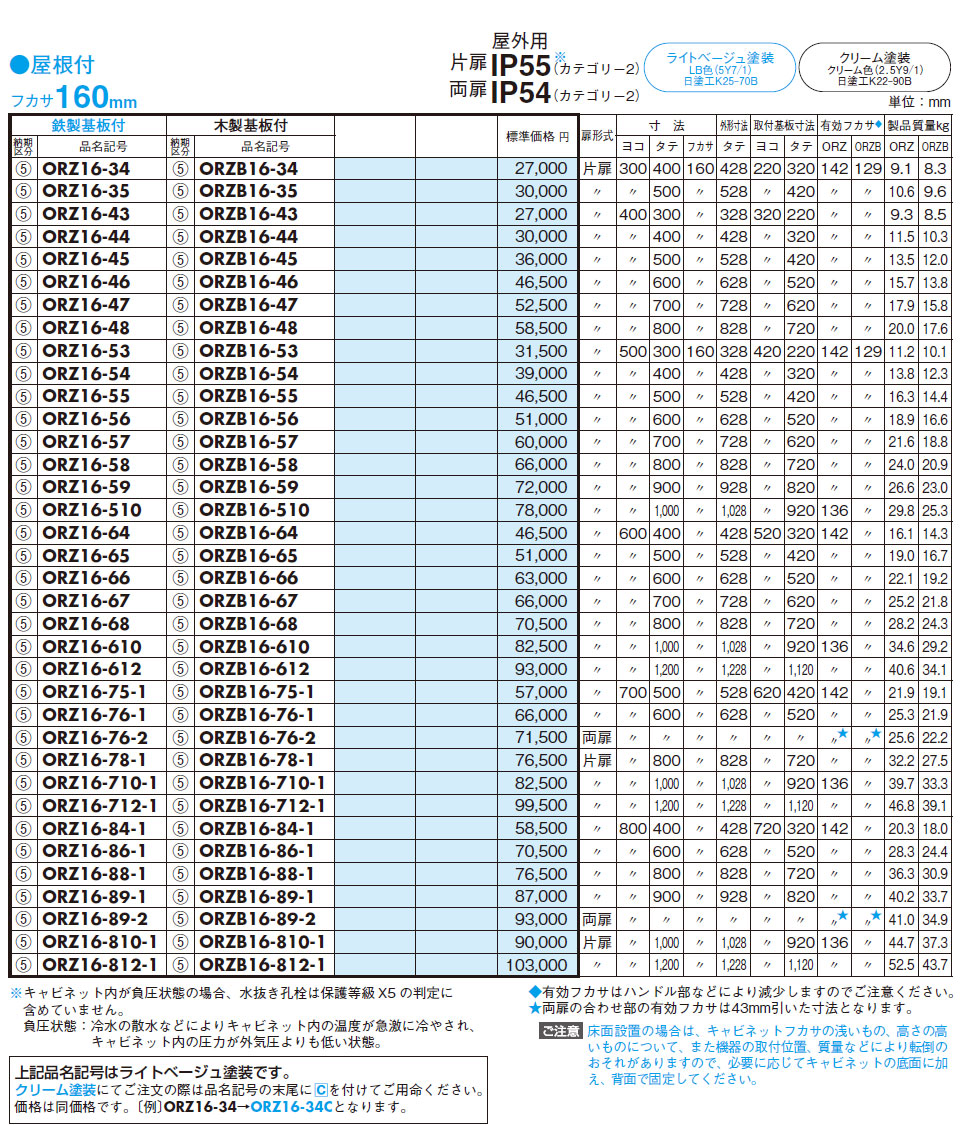 ORZB16-43 ORZ形屋外用キャビネット(水切構造、防塵・防水パッキン付)木製基板付