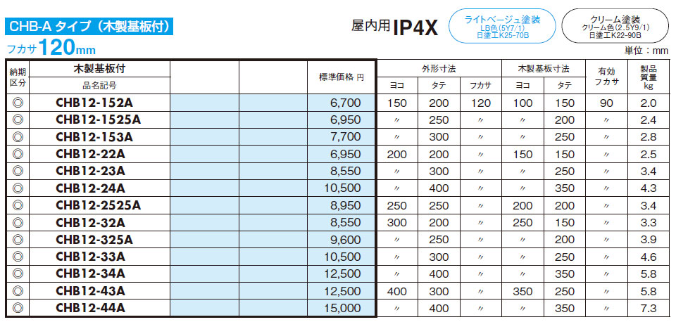 CHB12-22A CH形ボックス(防塵パッキン付)木製基板付