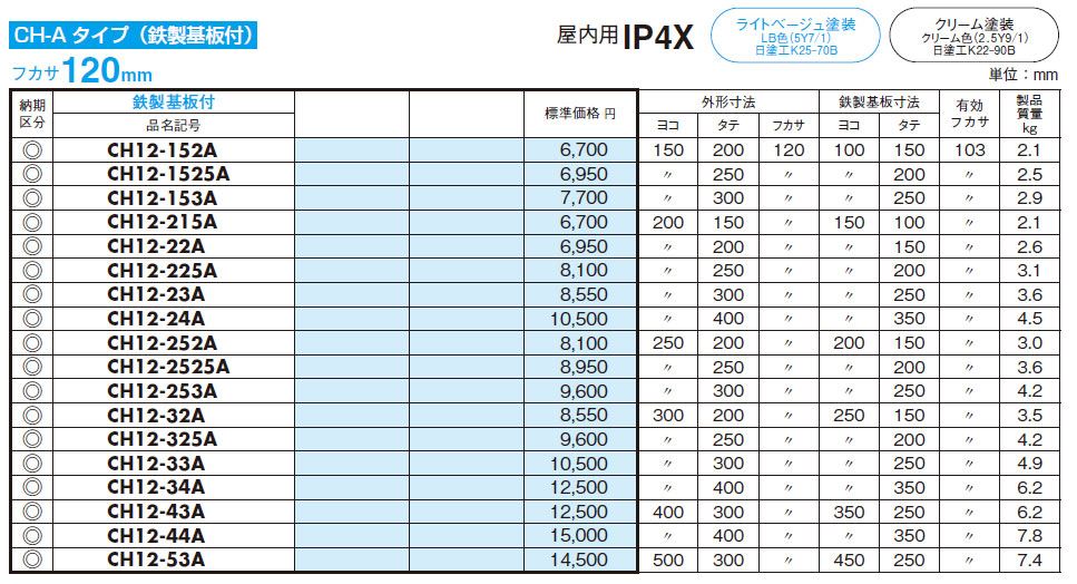 CH12-152A CH形ボックス(防塵パッキン付)鉄製基板付