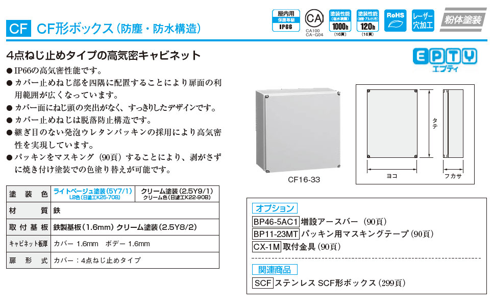 CF12-154 CF形ボックス(防塵・防水構造) 鉄製基板付