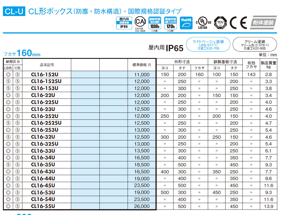 CL16-22U CL形ボックス(防塵・防水構造)国際規格認証タイプ 鉄製基板付