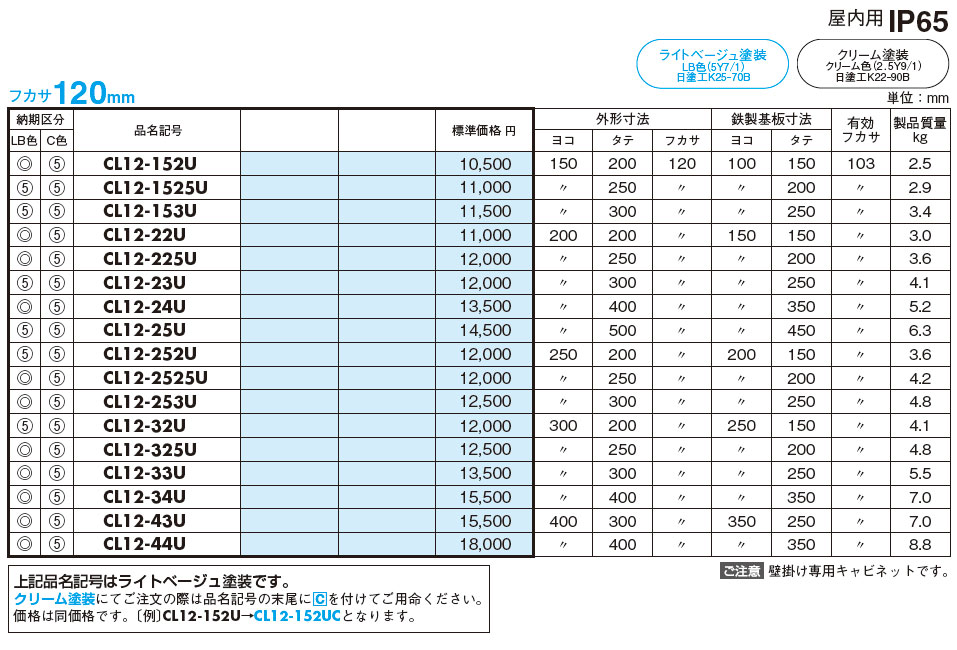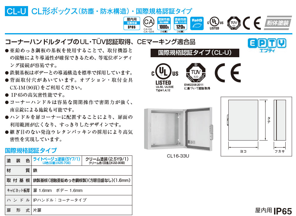 CL12-153U CL形ボックス(防塵・防水構造)国際規格認証タイプ 鉄製基板付