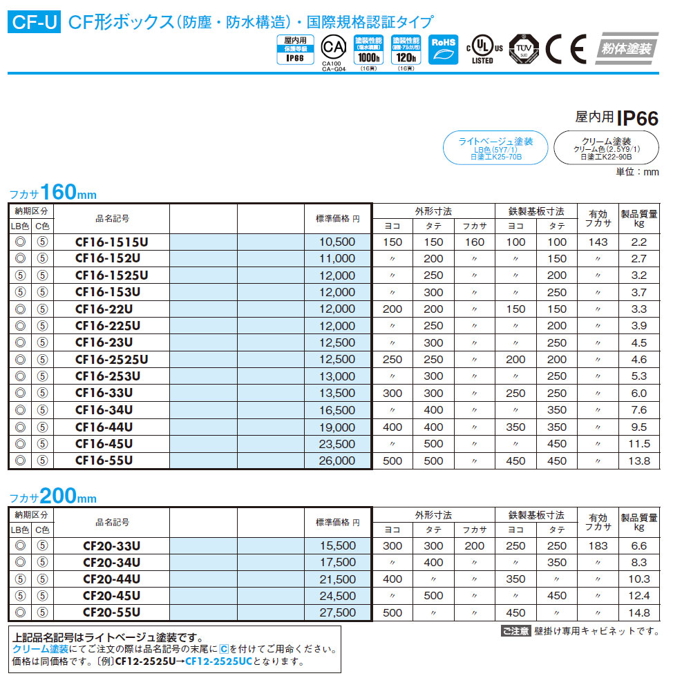 CF16-1525U CF形ボックス(防塵・防水構造)国際規格認証タイプ 鉄製基板付