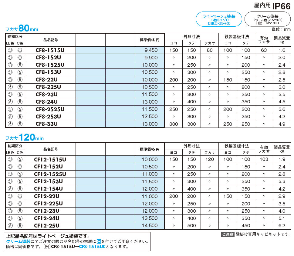 CF8-22U CF形ボックス(防塵・防水構造)国際規格認証タイプ 鉄製基板付