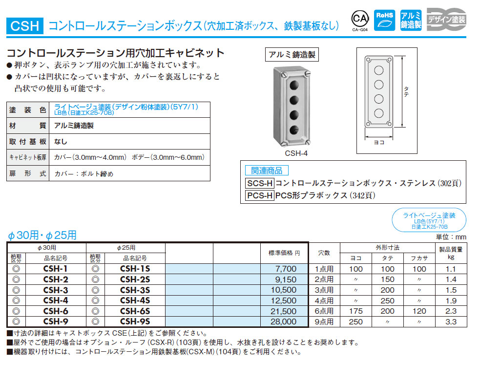 CSH-1 コントロールステーションボックス(穴加工済ボックス、鉄製基板なし)Φ30用