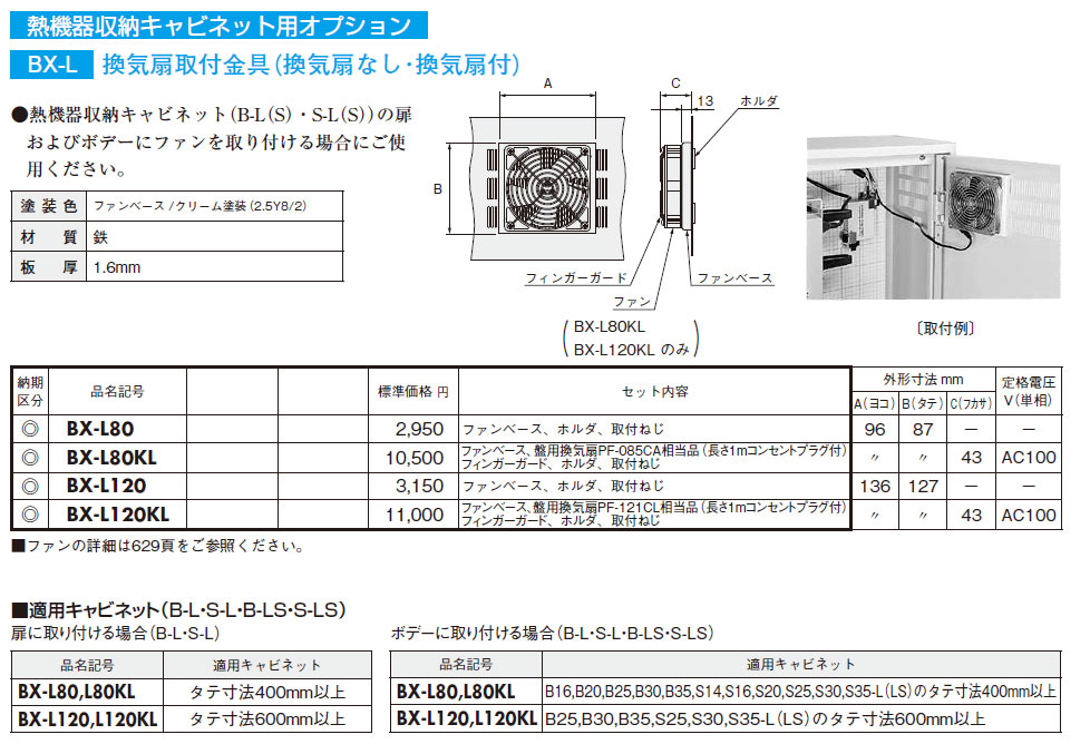 BX-L120 熱機器収納キャビネット用オプション