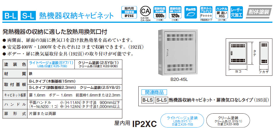 S14-44L 熱機器収納キャビネット 鉄製基板付