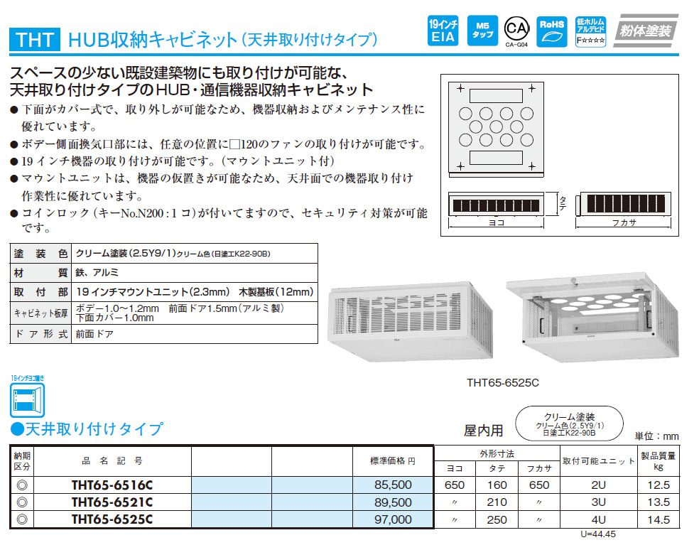THT65-6516C HUB収納キャビネット(天井取付タイプ)木製基板付